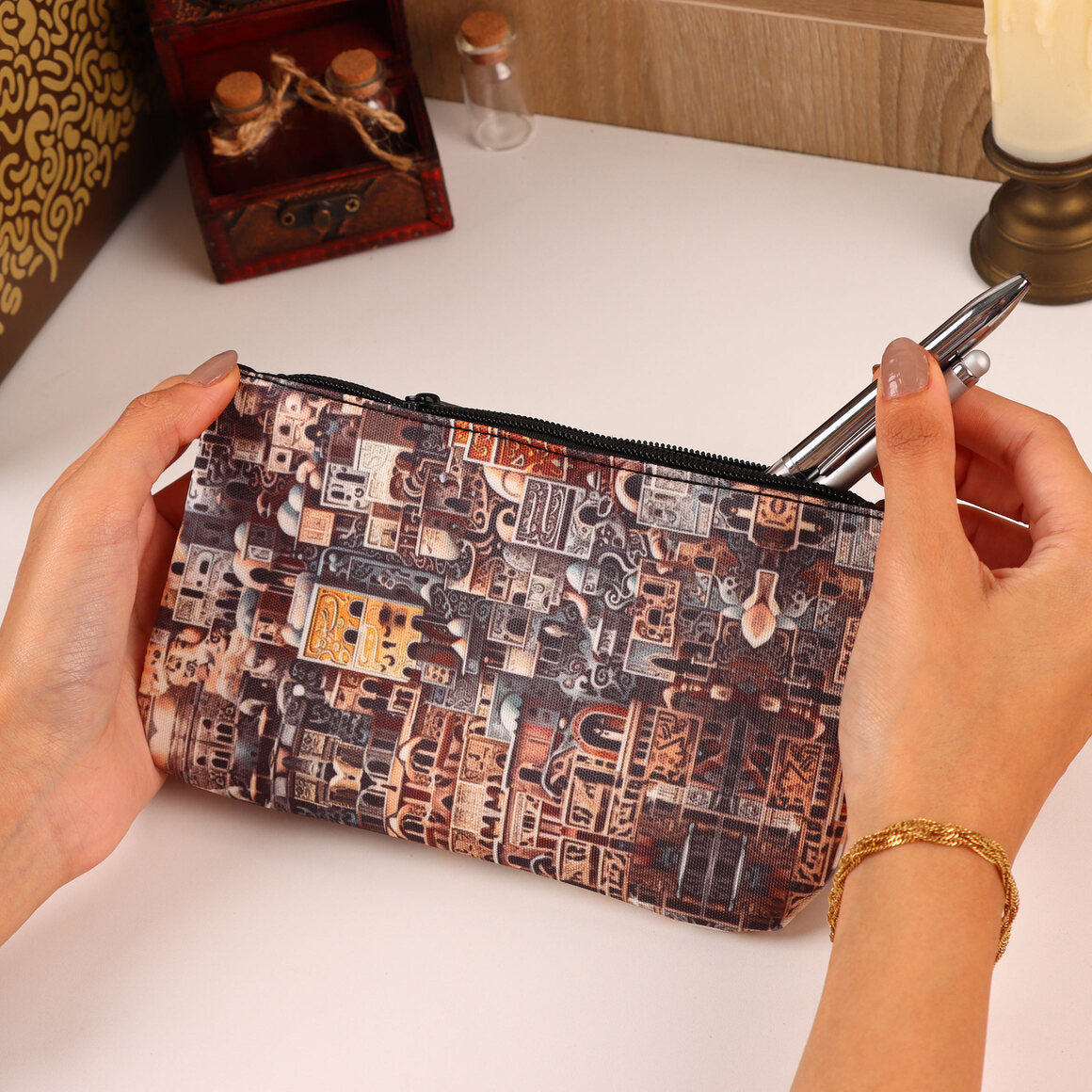 شنطة أدوات بسوستة واحدة مصممة بلمسة فنية مميزة، تناسب احتياجاتك اليومية سواء للدراسة، الشنطة، أو المكتب.